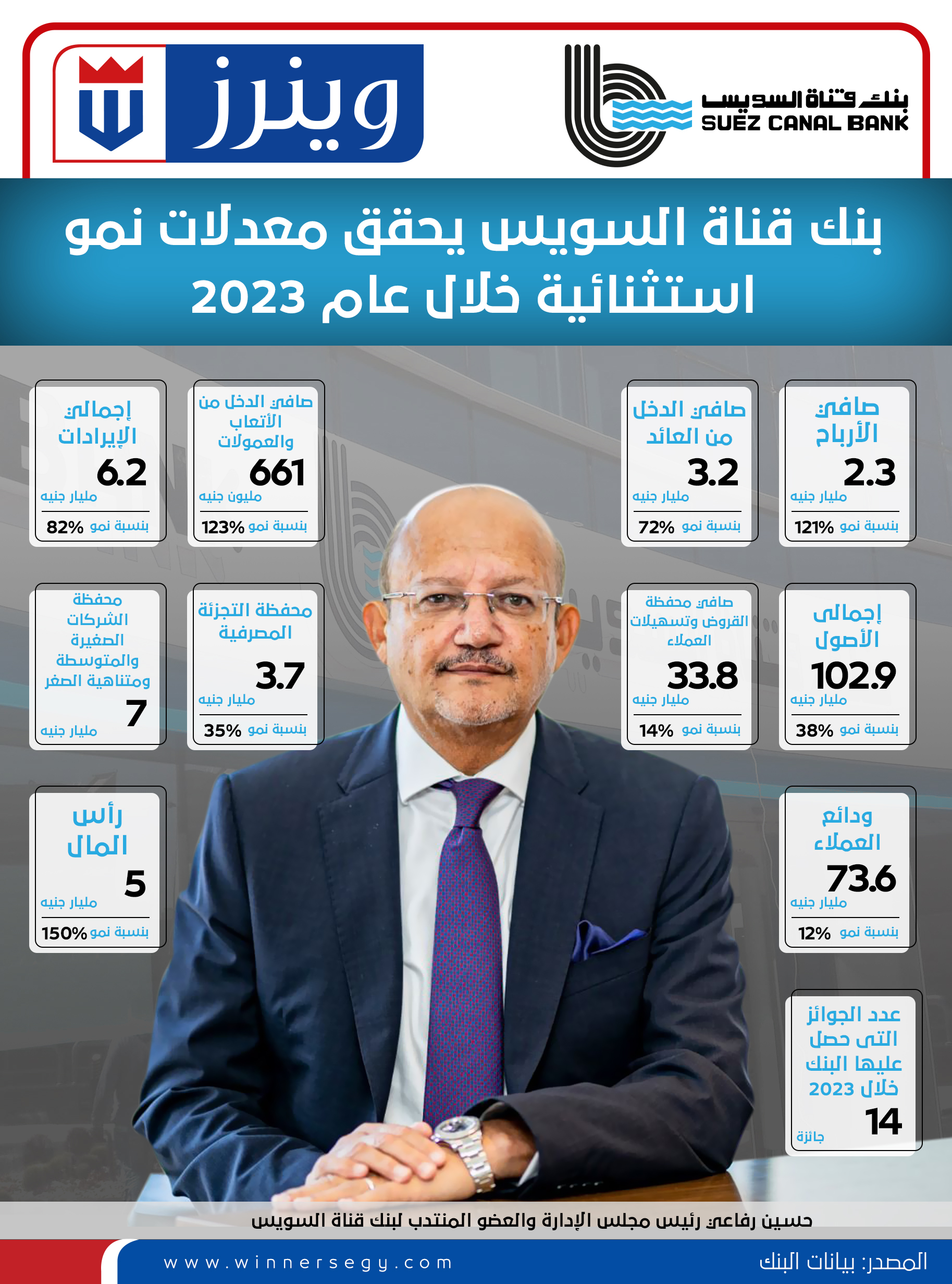 إنفوجراف.. بنك قناة السويس يحقق معدلات نمو استثنائية خلال 2023