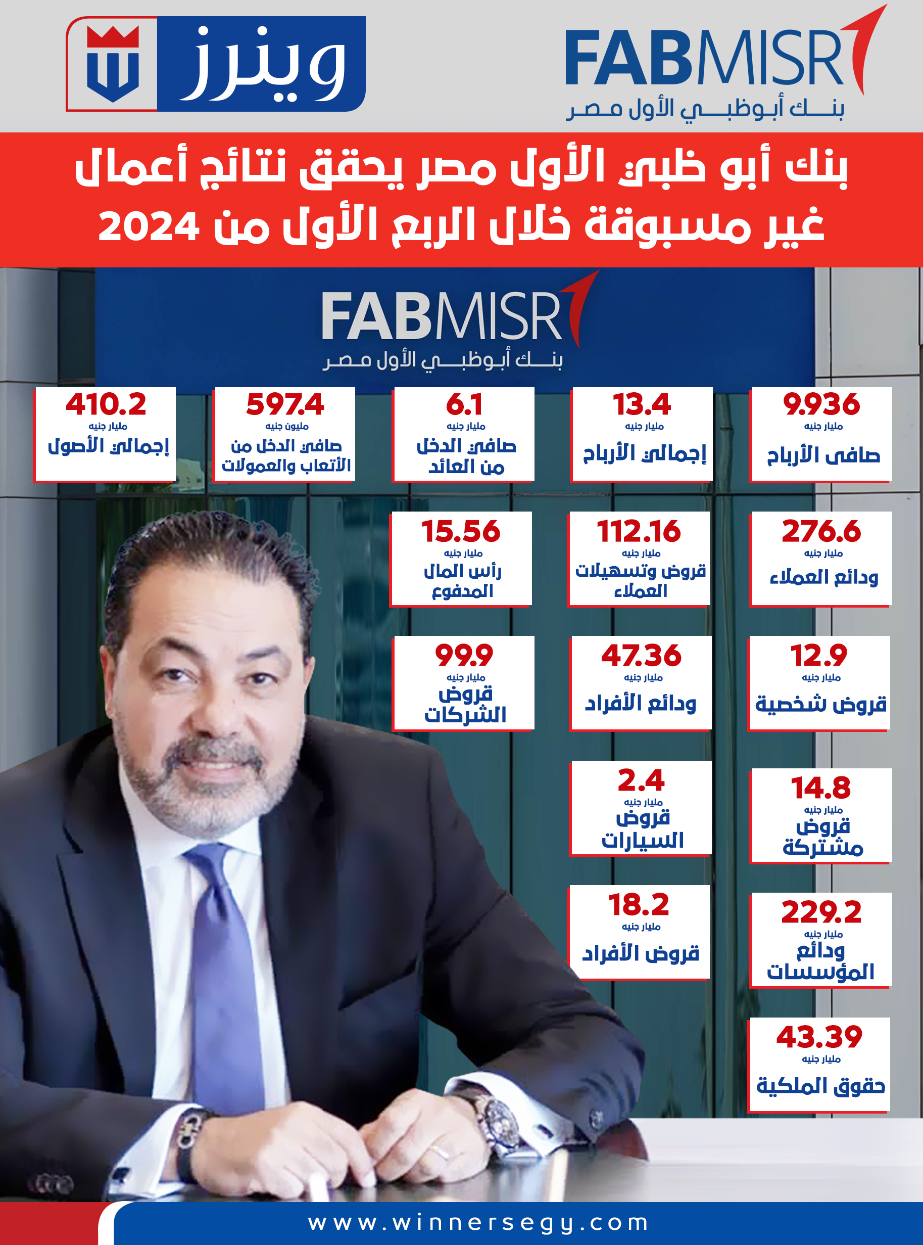 إنفوجراف.. صافي أرباح بنك أبوظبي الأول مصر ينمو 108% خلال الربع الأول من 2024