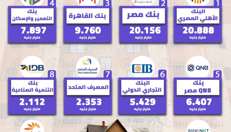 أكبر 10 بنوك تضخ 79 مليار جنيه تمويلاً عقارياً لمحدودي الدخل بنهاية سبتمبر 2025