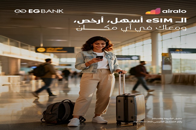 أعلن EGBANK، عن أحدث عروضه لعملائه، حيث يتيح 15% خصماً على كافة باقات انترنت Airalo مع شريحة الـ eSIM والمتاحة في أكثر من 200 دولة.