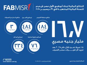 أعلن بنك أبوظبي الأول مصر، أحد أكبر البنوك العاملة في مصر، عن نتائجه المالية للسنة المالية المنتهية في 31 ديسمبر 2025، محققًا أداءً متوازنًا في عملياته المصرفية الأساسية.