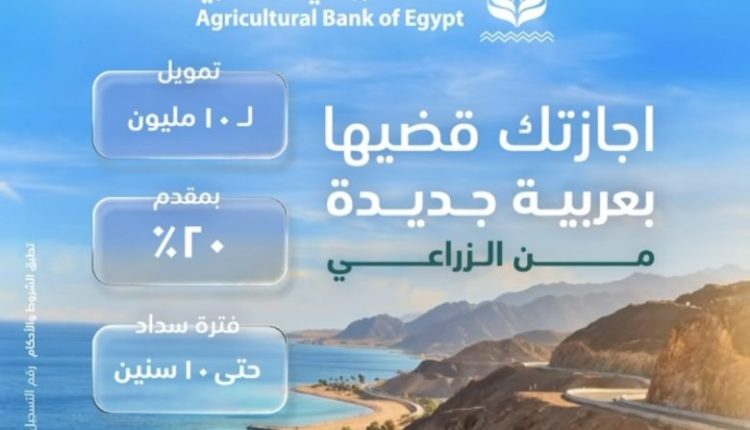 أعلن البنك الزراعي المصري، عن عرض تمويلي مميز لمساعدة عملائه على قضاء إجازاتهم بالسيارة التي يحلمون بها، سواء كانت رحلة إلى السخنة أو الجونة، مع الجمع بين رفاهية السيارة وراحة البال في السداد.