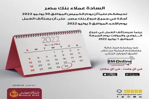 كشف بنك مصر عبر صفحته الرسمية على “فيسبوك” عن استئناف العمل في فروع البنك بالنوادي والمولات غداً الجمعة وذلك بعد إجازة 30 يونيو.
